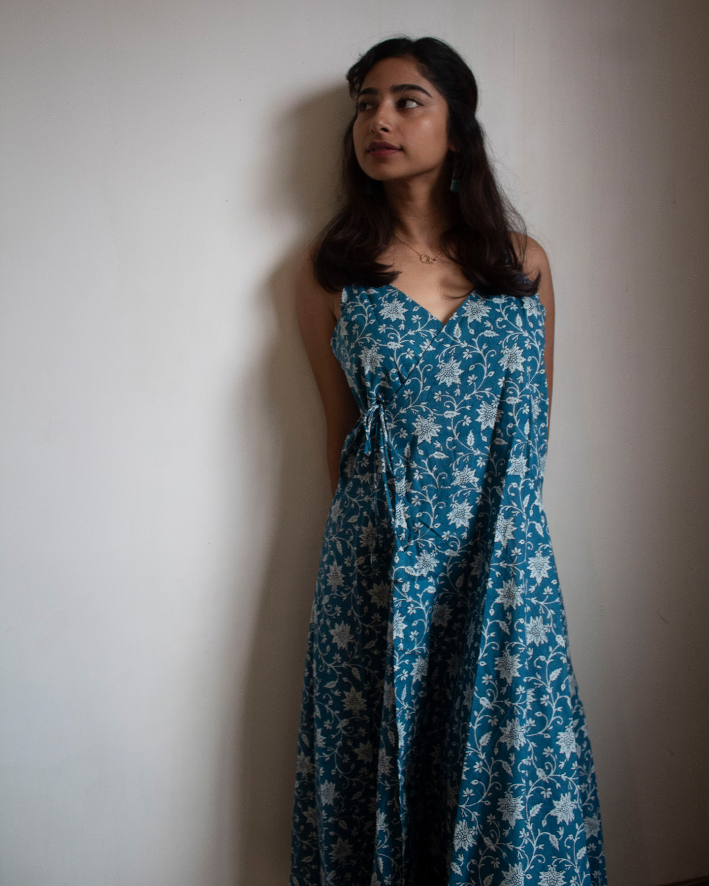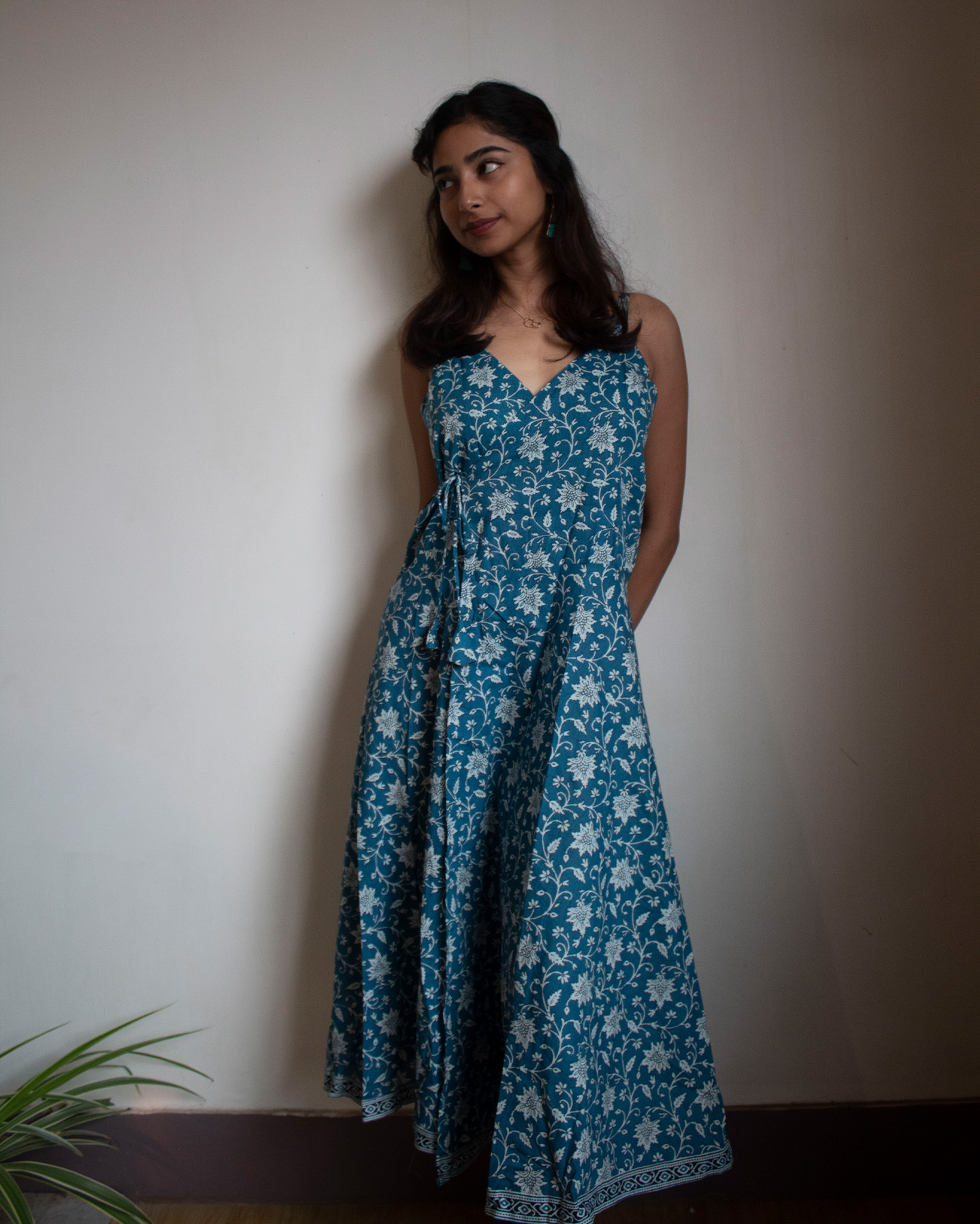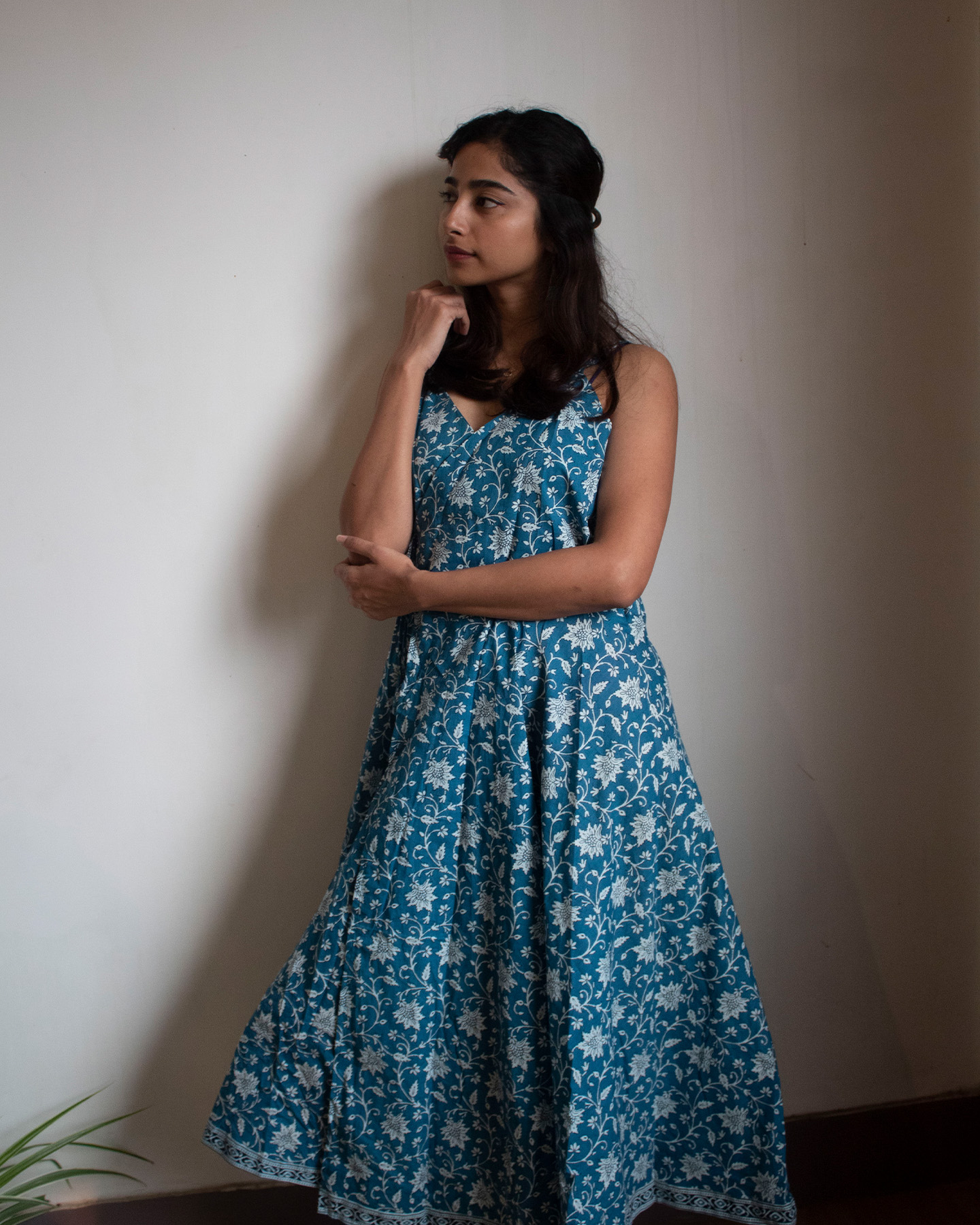 Embrace the beauty of blooms with the Periwinkle Petal dress. Crafted in a serene sky blue shade, this long dress features exquisite floral prints that capture the essence of spring. The lightweight fabric ensures comfort, while the flowing silhouette flatters every movement. Whether you’re attending a garden party, enjoying a brunch date, or taking a sunset stroll, this dress adds a graceful touch to any occasion. Pair it with delicate accessories and sandals for a relaxed look, or dress it up with heels and statement jewelry. The Periwinkle Petal dress is your go-to choice for timeless, effortless elegance.